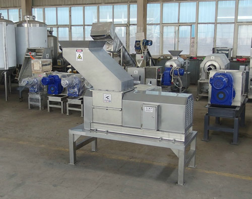 =4、特別強(qiáng)調(diào)的是,該破碎機(jī)特別適合中小型生鮮果汁廠,不僅可以破碎水果類,也可以破碎蔬菜類,由于高速旋轉(zhuǎn)的轉(zhuǎn)子的強(qiáng)壓作用,而使得破碎后的物料迅速通過篩網(wǎng),而不會堵塞篩網(wǎng),同時也提高了產(chǎn)量。而錘式破碎機(jī)與鼠籠式破碎機(jī)遇到蔬菜類物料只能一顆一顆填料才勉強(qiáng)可以進(jìn)料,速度極慢。