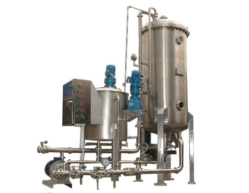 過濾時,首先在過濾盤上形成硅藻土預涂層。被過濾的液體經硅藻土預涂層時,其中的雜質即被阻擋;而純靜的液體經過微觀管狀或片狀的間隙以及顆粒之間的間隙通過過濾層,從而起到過濾作用。隨過濾時間的推移,在預涂層上被濾掉的雜質會越來越多,且將阻塞過濾通道。因此在過濾過程中,還需對進入過濾罐的被過濾的液體,添加一定劑量相應粒度的硅藻土,以維持正常的過濾過程。另外,如果過濾時需要脫色,還需加入一定比例的活性炭。
